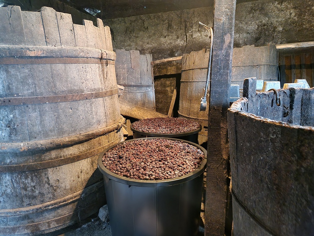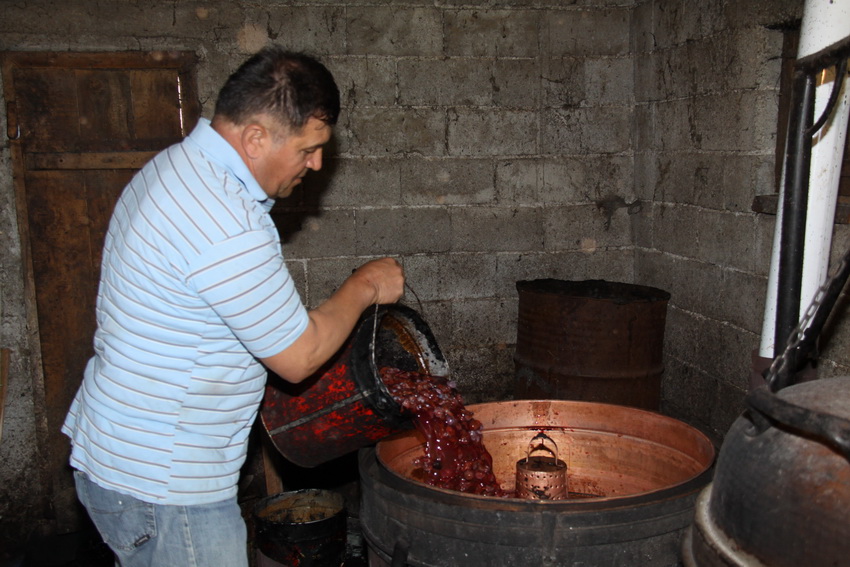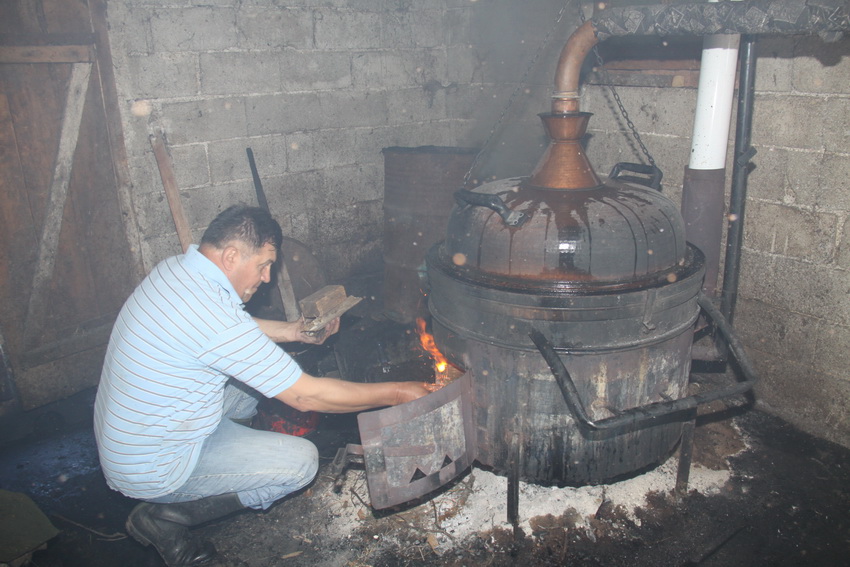 The processing of plums in a home environment to obtain brandy involves specific skills, usually employed by male members of the household, while other family members take part in harvesting plums and preparations for distilling. The process involves several stages, such as harvesting fruit, collecting and transporting fruit to brewing vessels, processing fruit and the fermentation of the fruit juice (džibra), distillation of the fermented fruit brew, re-distillation of raw mild brandy and slow aging, in oak barrels. The distillation process is typically accompanied with the gathering of male family members, friends and neighbours. Brandy is a beverage that is served both daily and on special occasions: during collective festivities, various types of receptions, business meetings, and it is also a mandatory element of the ritual of the annual and life cycles. Brandy drinking is accompanied with toasts expressing the best wishes for health.